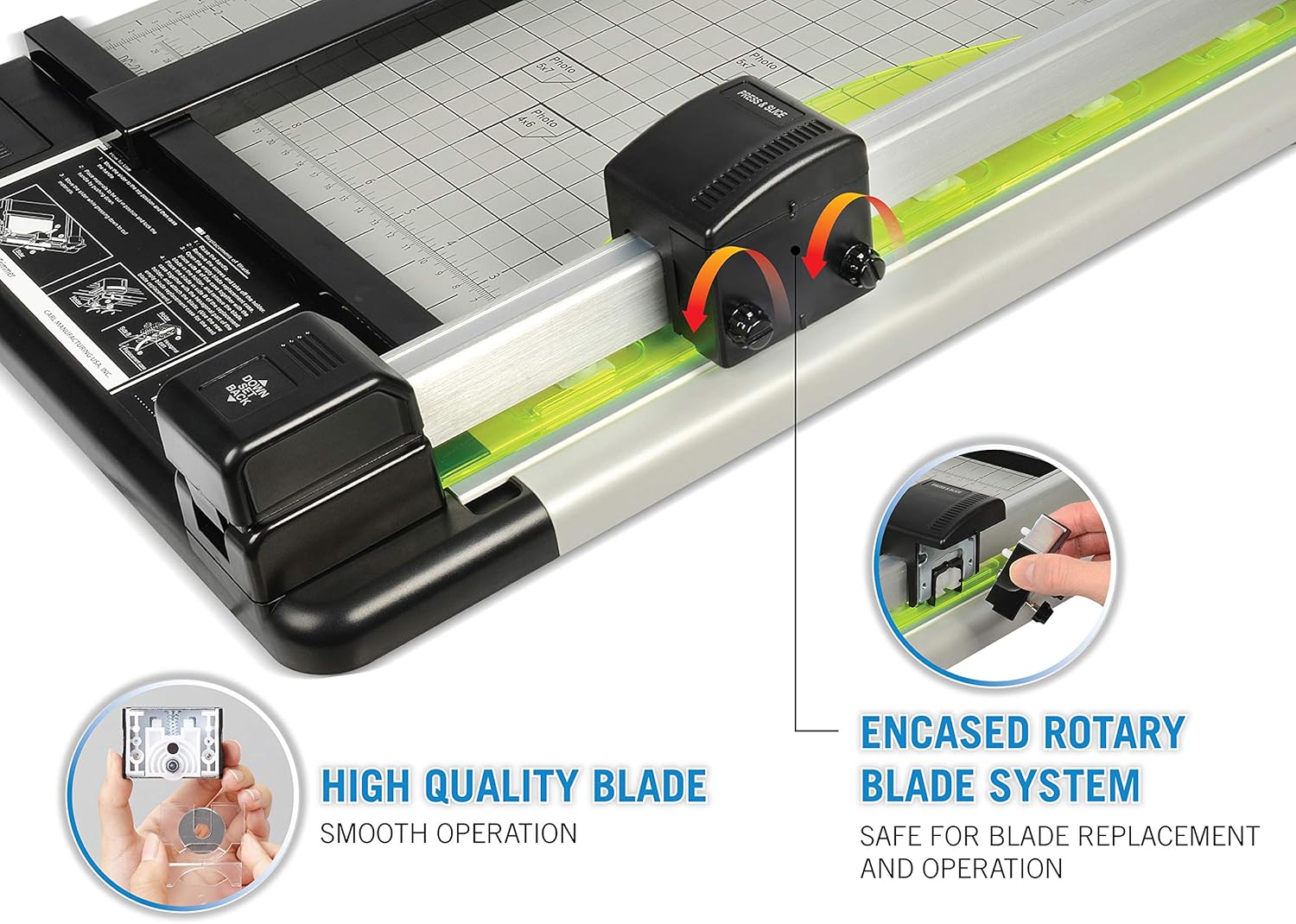 - Capacity for 36 sheets of 20 lb. paper. Adjustable magnetic paper guide hold materials on a calibrated sturdy metal base board. Manufacturers Limited Lifetime Warranty (excludes blades and cutting mats).