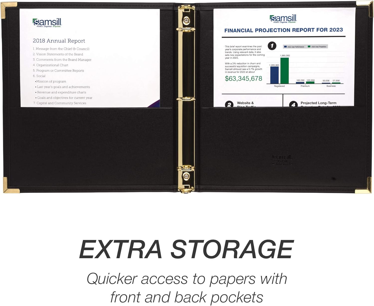 - UPSCALE ACCENT BUSINESS SUPPLIES – Brass-plated metal rings and corners give a clean, professional and upscale appearance to the binder organizer