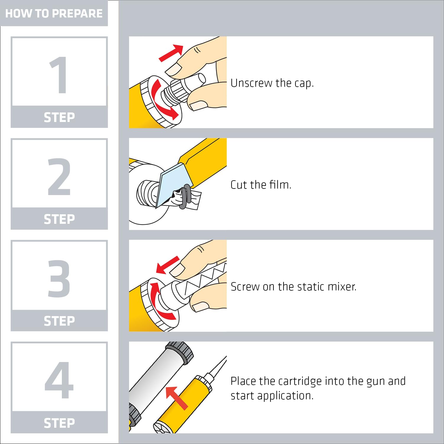 - HANDY CARTRIDGE FITS MOST APPLICATOR GUNS —Just cut film off the cartridge's tip and screw on static mixer, then insert cartridge into gun. The narrow tip makes it easy for accurate placement of epoxy