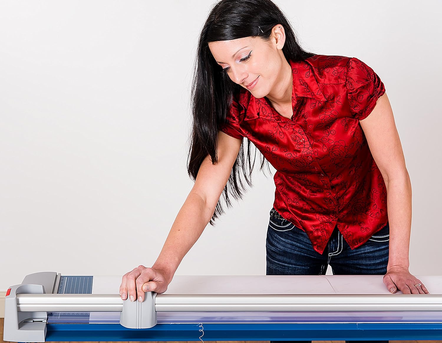 - SPACE-SAVING STEEL STAND- with paper catch for optimal cutting height
