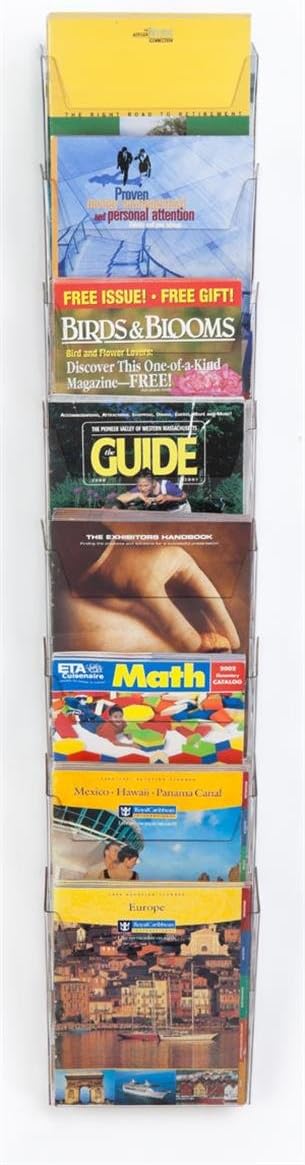- Eight individual pockets hold and organize a variety of periodicals up to 8-1/2 x 11-inches wide.