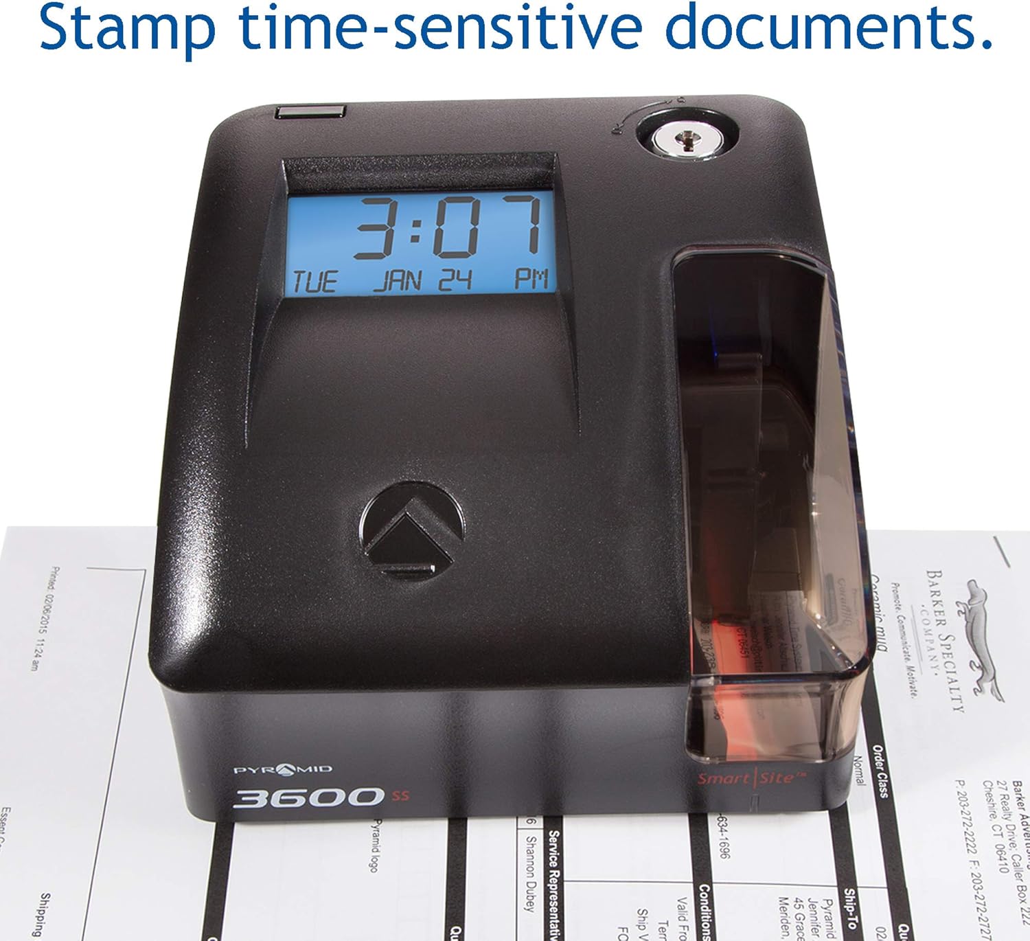 Pyramid Time Systems - 3600SS Dual Function Employee Time Clock and Document Stamp with SmartSite LED Alignment and Tri-View Window - Includes 25 Time Cards, Ribbon, 2 Security Keys