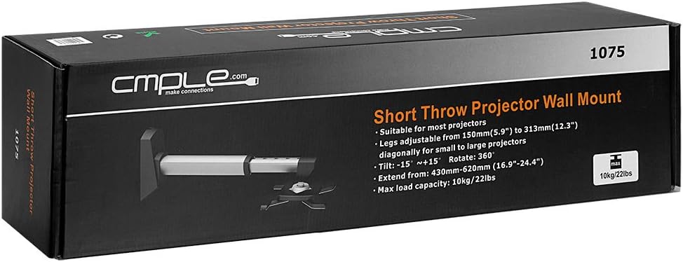 - PACKAGE INCLUDE: 1 x Aluminum Short Throw Projector Wall Mount Holds 22 Pounds – Black/Silver. Product comes with Cmple Lifetime Warranty.