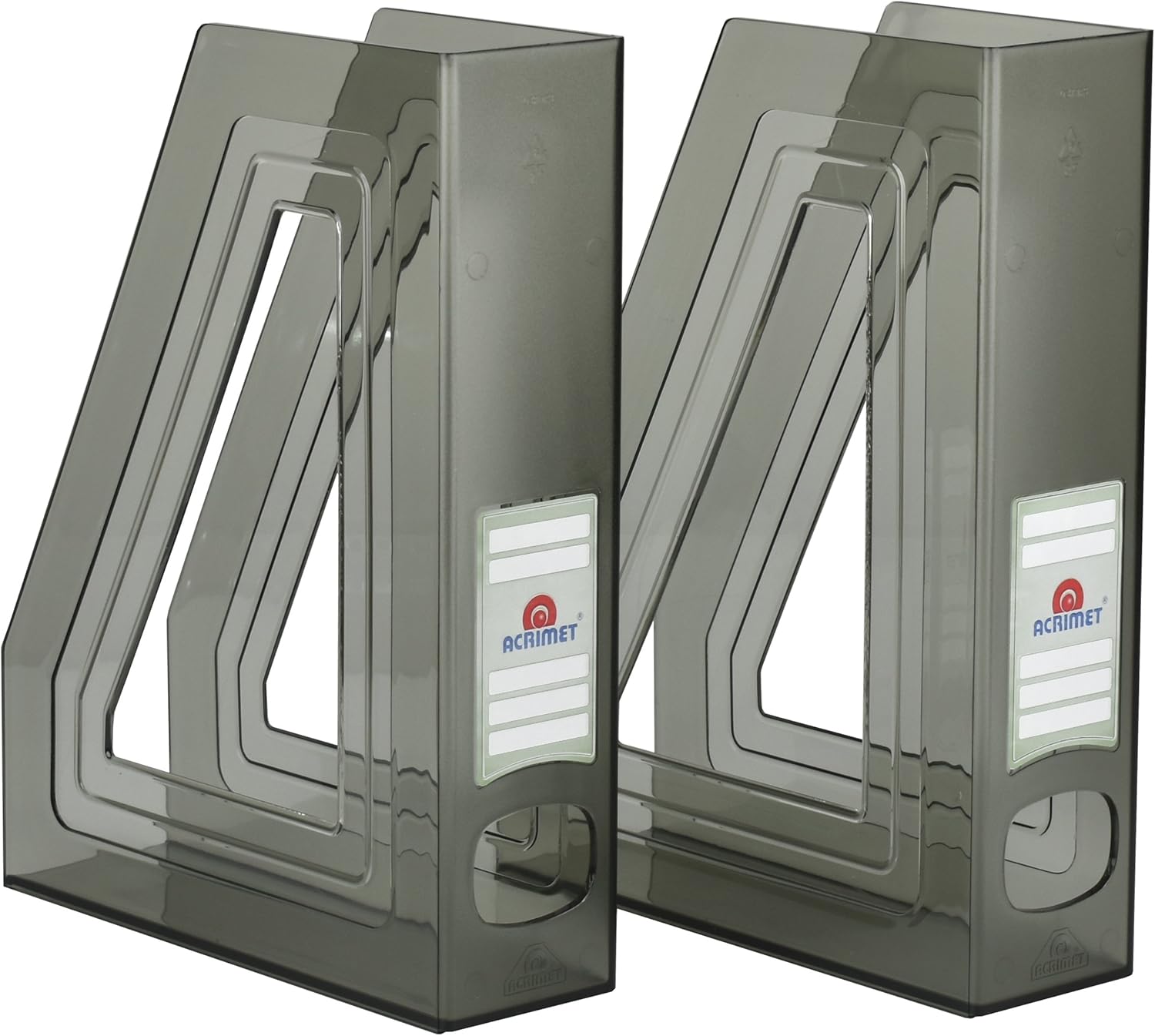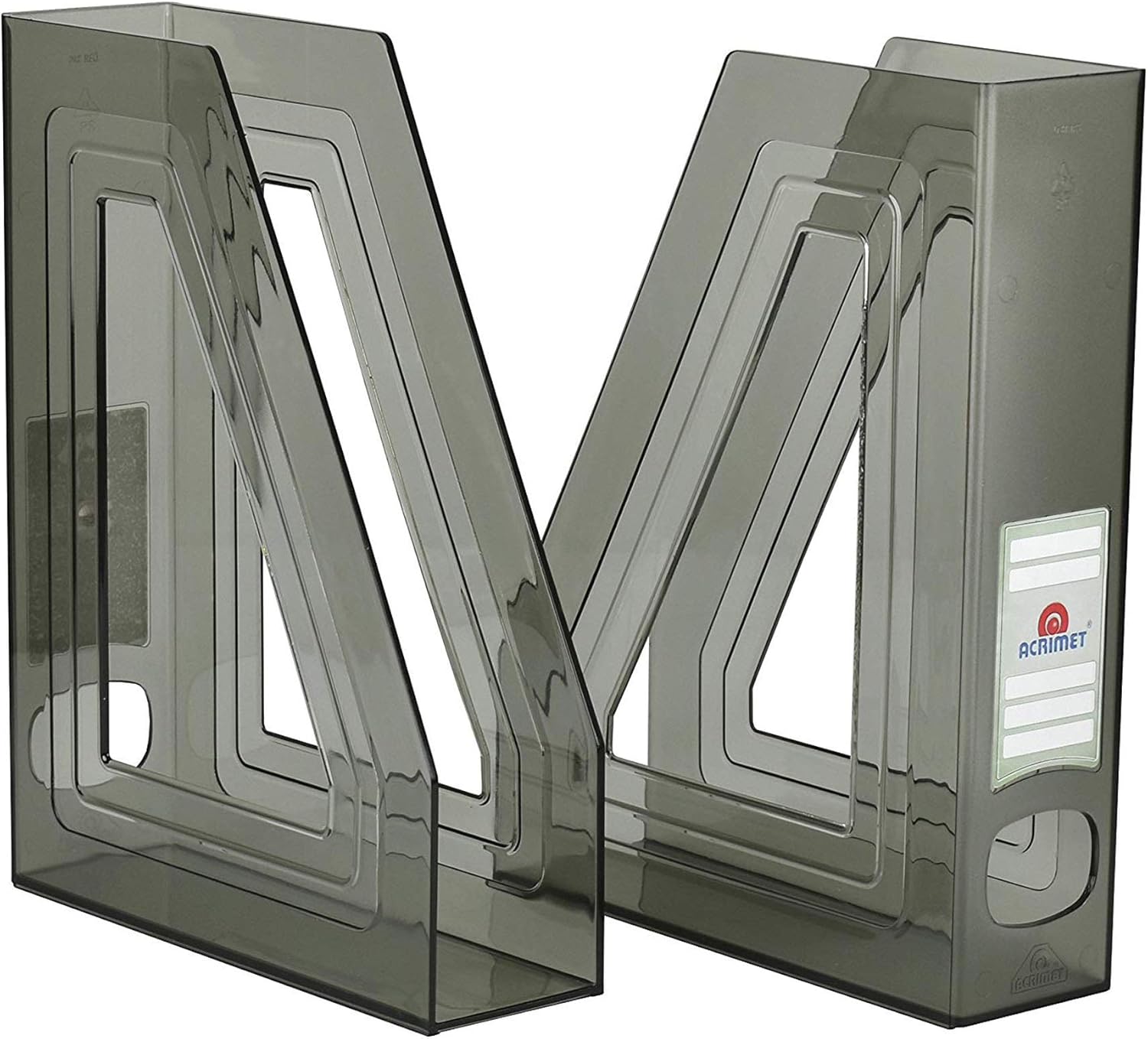 Acrimet Magazine File Holder, Durable Rack, Space-Saving Organizer (Plastic) (Smoke Color) (2 pack)