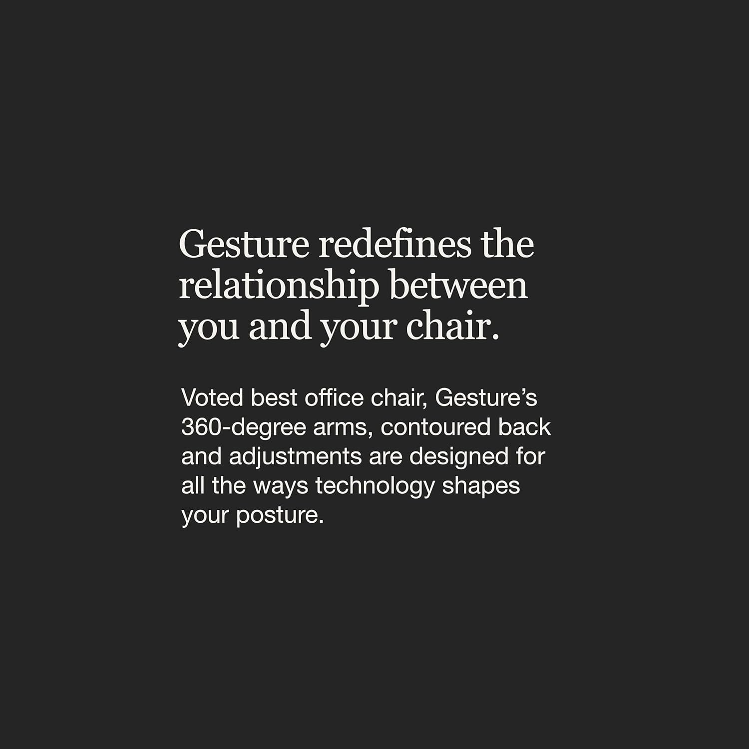 - Ergonomic Chair Design: The Gesture chair by Steelcase is expertly designed to redefine the relationship between you and your chair, adjusting to your unique body and work posture