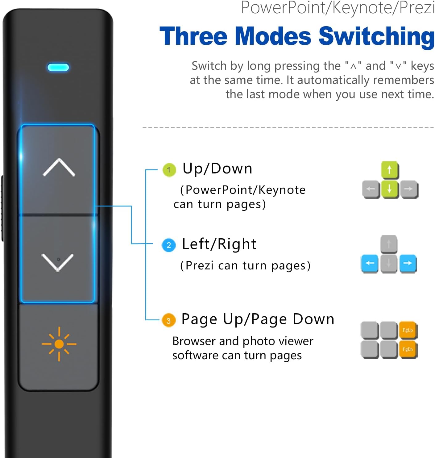 - Long Control Range - With this wireless presenter remote, You can move freely within a wireless range of up to 328 feet (100 meters).Its performance advantage will be more prominent in large room presentations.