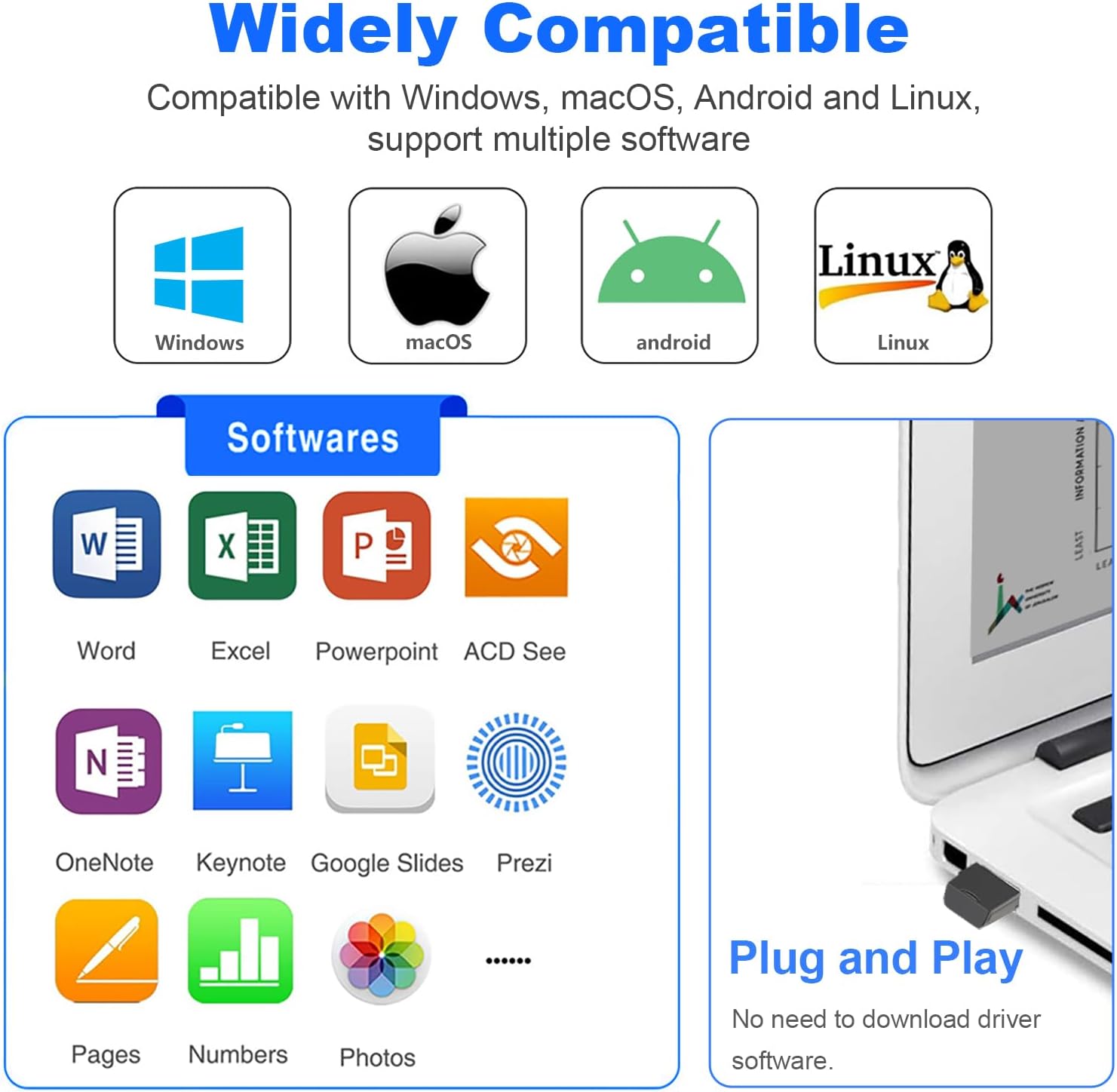 - Wide Compatibility - This pointer for presentations is compatible with Windows, macOS, Linux, Android and leading presentation software like PowerPoint, Keynote, Prezi, Google slides and more.