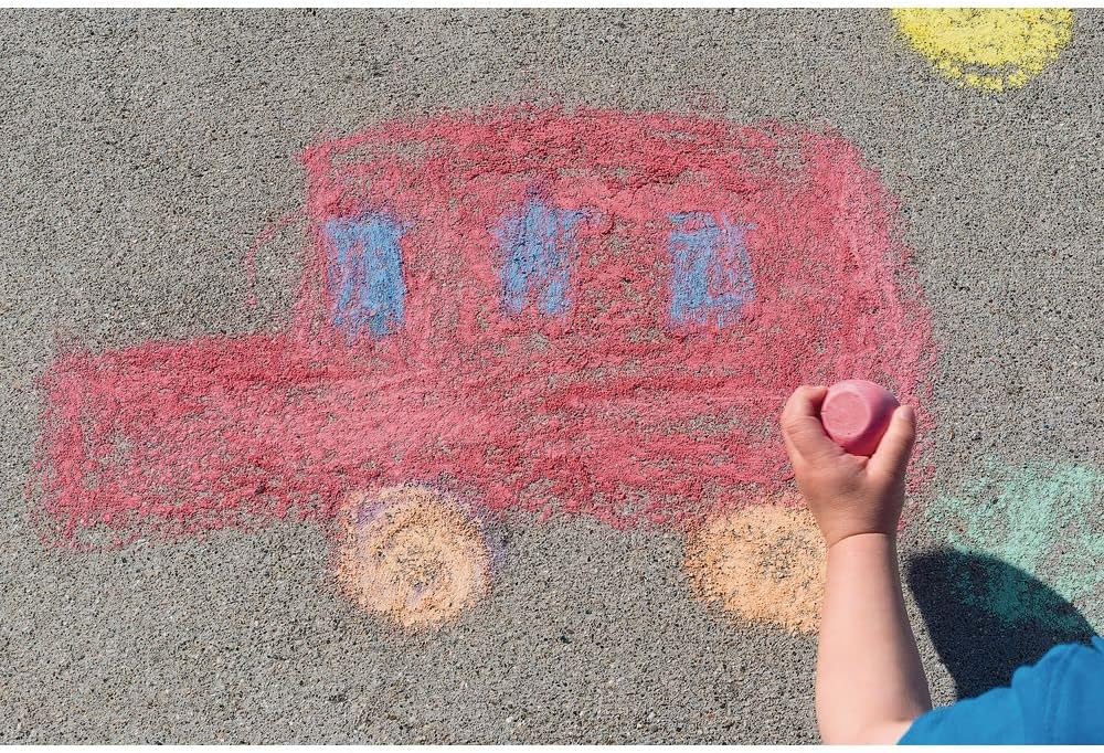 - BENEFITS: Using sidewalk chalk outdoors gives kids fresh air and screen-free play time. Drawing promotes motor skills, creative thinking, self-expression, and creative expression.