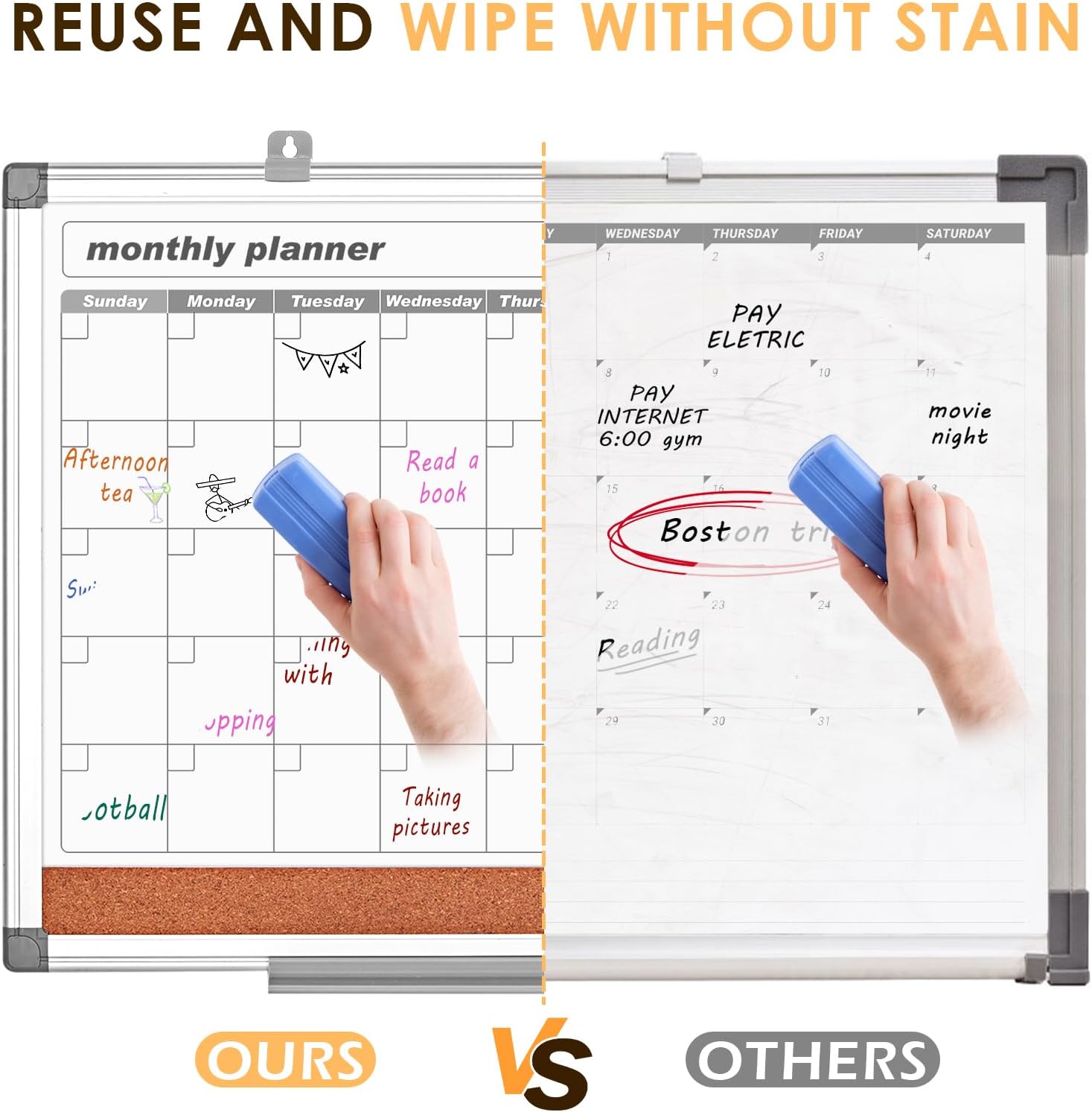 MAKELLO Dry Erase Calendar for Wall 24x18 in, Whiteboard Calendard with Cork Board for Office, Home, School, Family, Kitchen and Bedroom