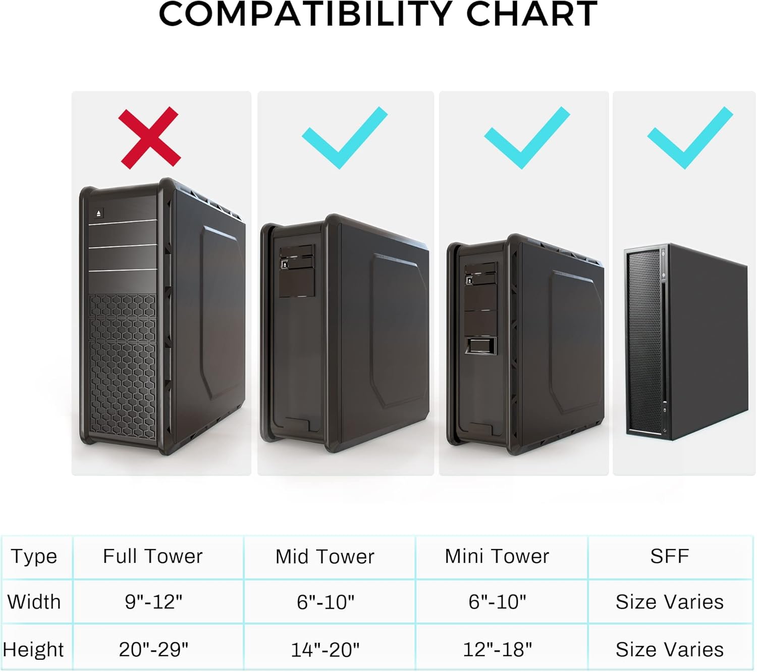 - Adjustable CPU Mount: Universal computer tower fits most PC cases with adjustable width from 6.3" - 10.2" and adjustable height from 0 to 20.5" with more adjustable range than others. Supports weights up to 44 lbs.