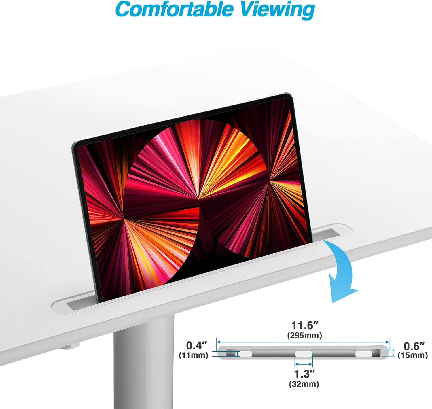 - Large Workstation Surface: Wood top 28.0 x 19.7 in (710 x 500 mm) fits most monitors, laptops, or tablets with keyboard; rounded edges and built-in tablet stand improve usability.