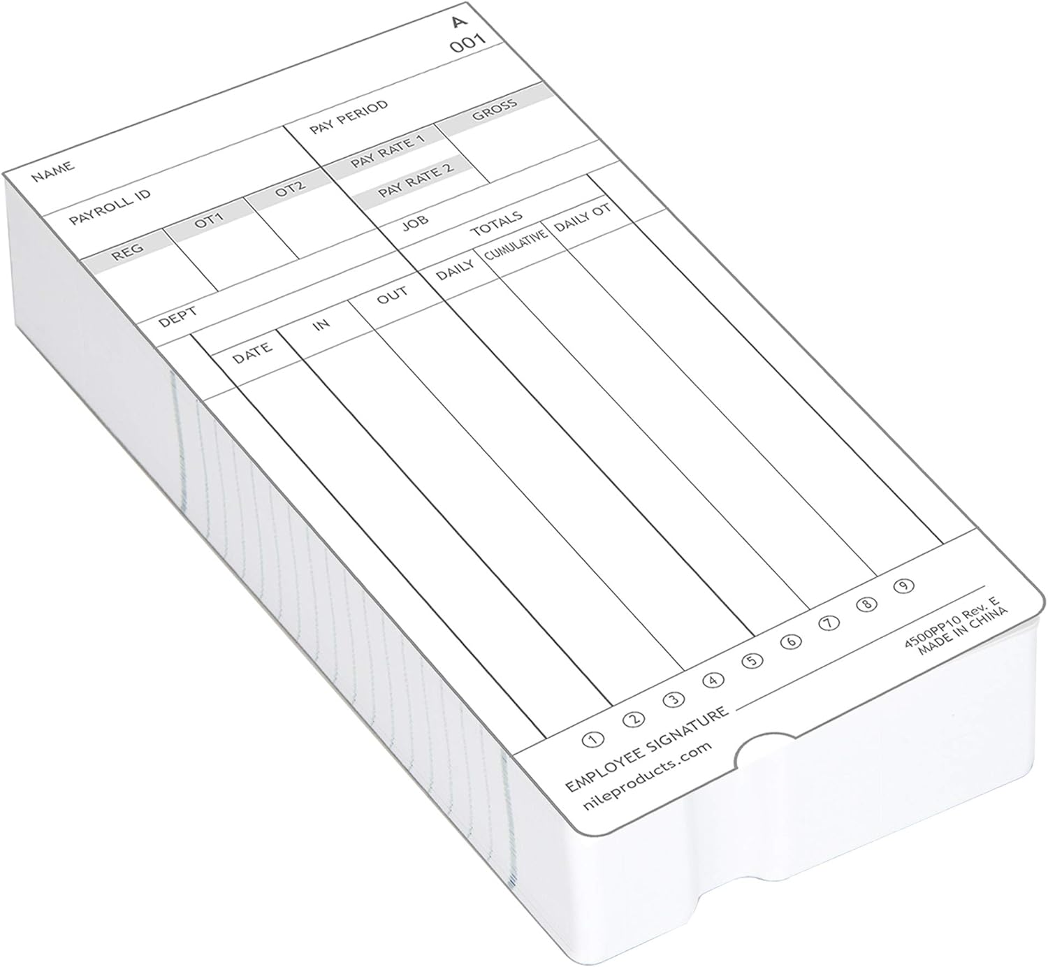 - Compatible: Nile Products Authorized Time cards are Specifically Designed for Small Business Punch Pak model 4500PP Calculating Time Clock. Each package contains 100 time cards and 30% post-consumer recycled content.