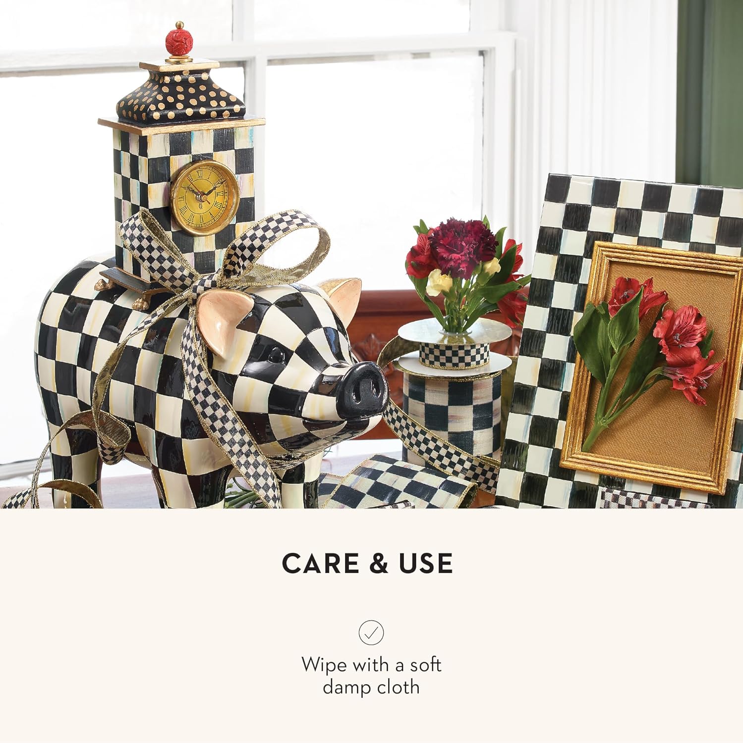 MACKENZIE-CHILDS Desk Clock, Decorative Wood Clock for Kitchen and Living Room, Black-and-White Courtly Check