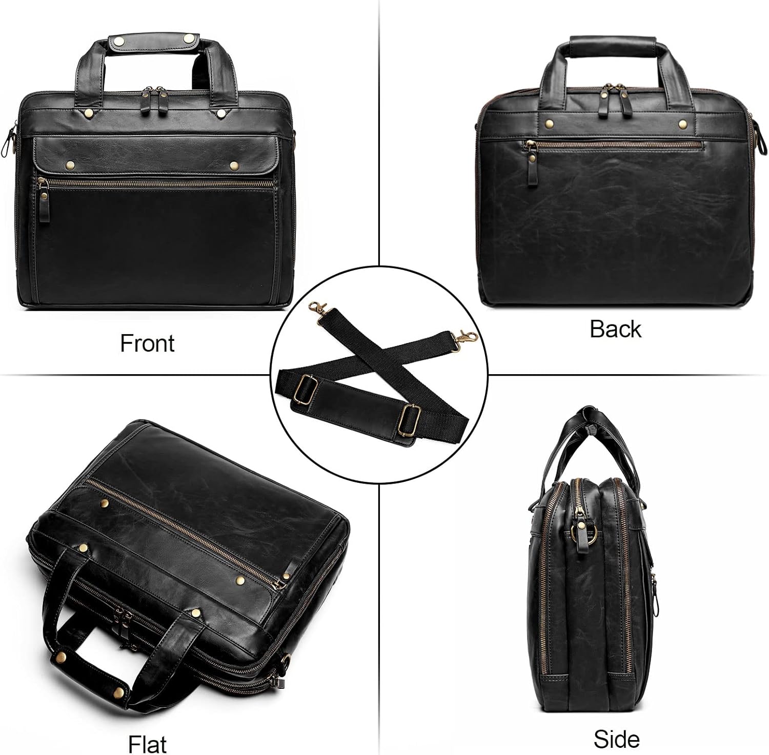 - 【TROLLEY COMPATIBLE】The compatible belt at the back of mens leather laptop briefcase can be easily fit into luggage trolley, freeing your hands and bringing you comfort and convenience for business trips and travel.