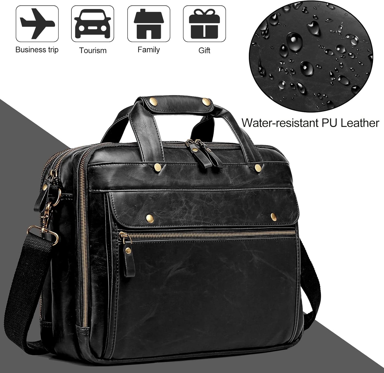 - 【PREMIUM MATERIAL & LARGE SIZE】 The briefcases for men is made of high quality PU LEATHER, with a stylish appearance, waterproof and large capacity. Dimension: The size of this retro laptop messenger bag is 16.5“L *5"W *13.2"H, Weight: 3.0lbs. Inner padded laptop sleeve fits most laptops up to 15.6" and cohesive seal ensures it to be steady.