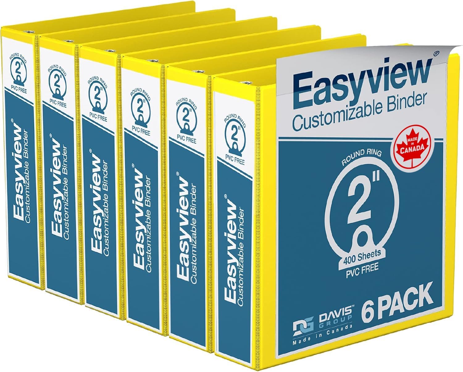 Easyview Premium 3-Ring Binders with Clear-View Covers and Round Rings, Binders for School or Office, 2 Inch, Pack of 6, Yellow