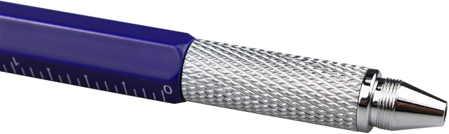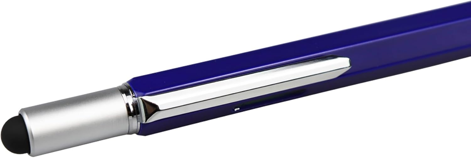 DUNBONG Metal Multi tool Pen 6-in-1 Stylus Pen - With Screwdriver, Ballpoint Pen Black ink, Stylus pen, Level and Ruler, 1-Count (Blue)