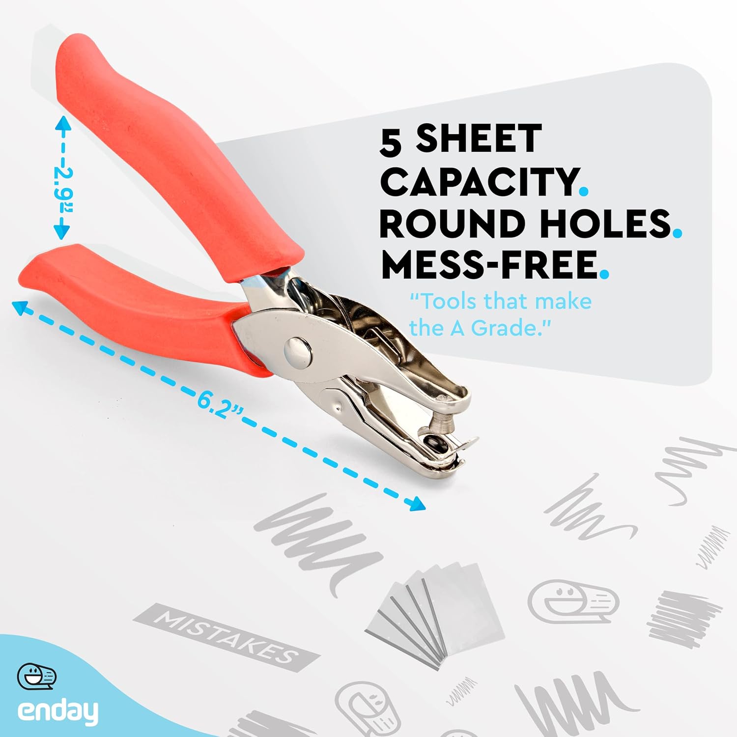- ✓Specification: Soft plastic handles provides ergonomic and comfort for repetitive use, Waste clip holder adds convenience and saves clean up time, High capacity receptacle area holds more punch outs to keep you punching longer, capacity at least 8 sheets of this paper punch; Punch hole size: approx. 1/ 4 inch in diameter