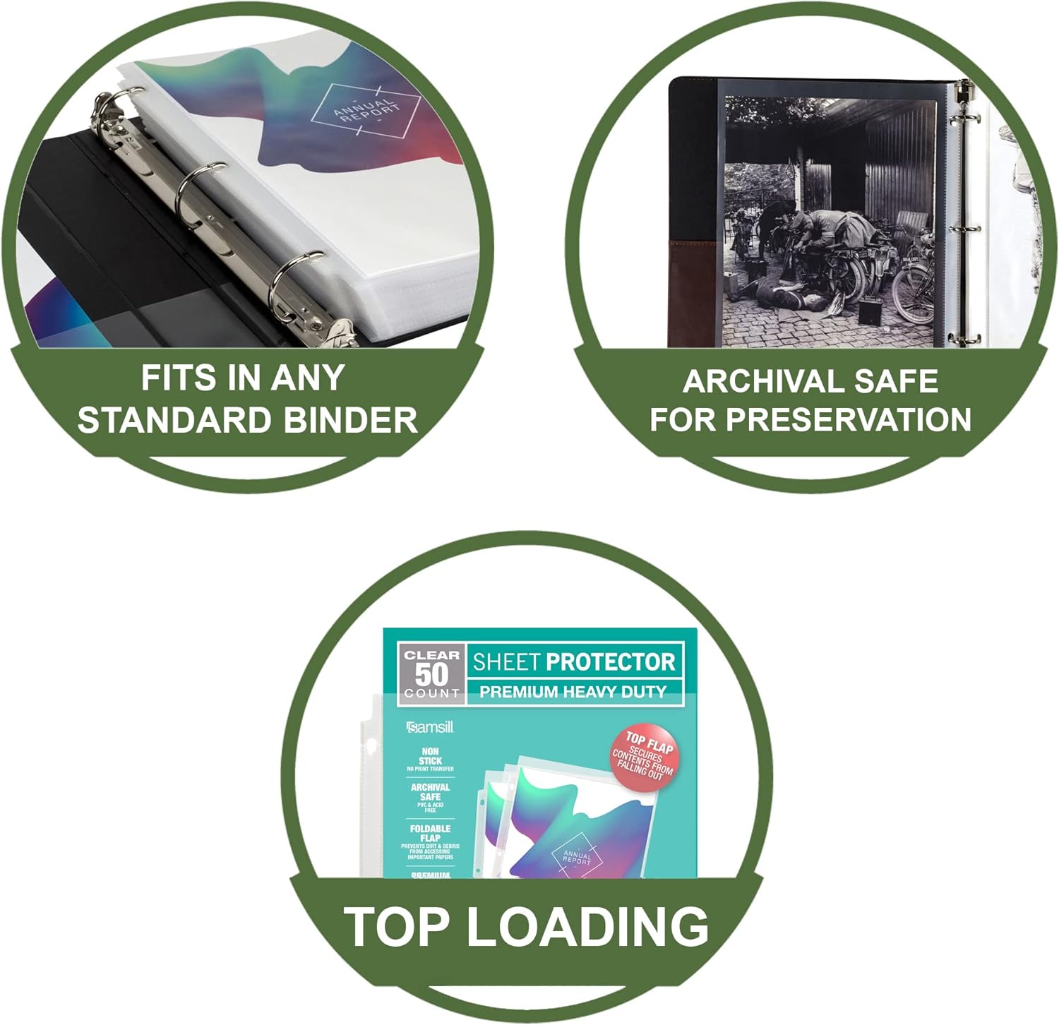 Samsill Sheet Protectors, 8.5x11 Inch Page Protectors for 3 Ring Binder, Super Heavy Duty, Secure Top Flap Protector, Letter Size, Top Loading, Acid Free, 50 Pack