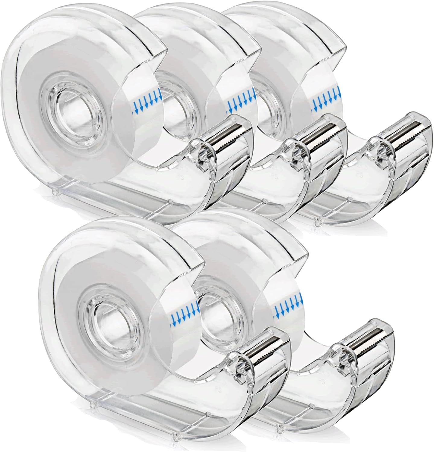 - 【Size and Package 】Refillable dispenser size:4.2*1*3 Inch,5PACK include 5 rolls Clear Tape,the tape size:0.7*1300 Inch