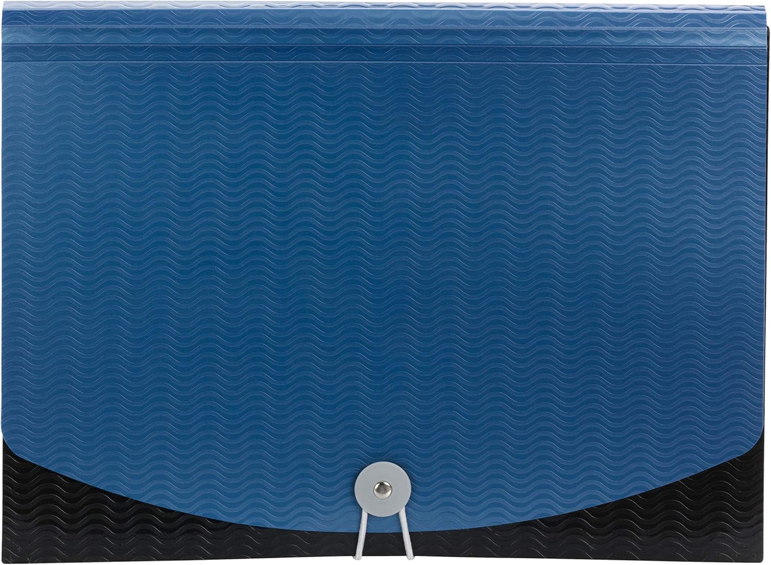 - Keep projects and tasks organized with our Poly Expanding File, featuring 6 clear dividers inside a black case and a unique embossed wave pattern on the solid blue flap cover