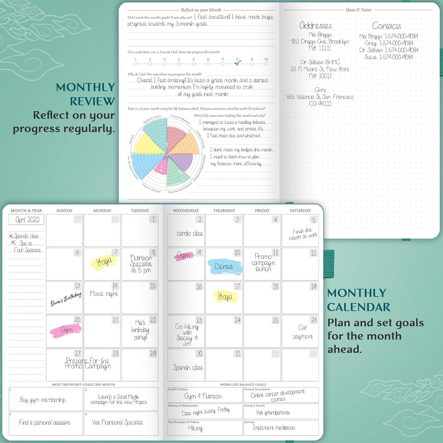 - STAY ORGANIZED & BOOST PRODUCTIVITY – Use spacious monthly calendars and weekly pages to set goals, tasks, deadlines, and appointments. Easily manage your schedule with convenient 6 AM to 9 PM time slots.