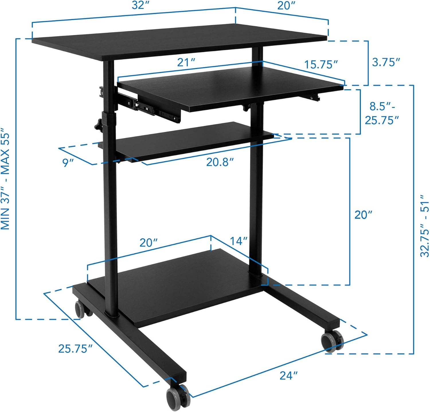 - HEIGHT ADJUSTABLE - Ergonomic mobile stand up desk computer workstation is height adjustable from sitting to standing.