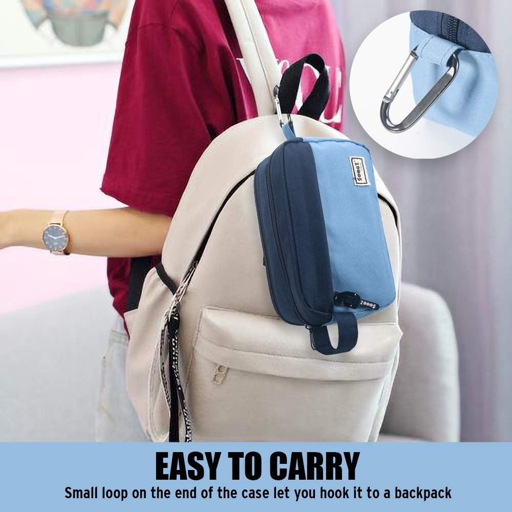 Sooez High Capacity Pencil Case, Big Pencil Bag Pouch Box Organizer Pen Case, Portable Journaling Supplies with Easy Grip Handle & Loop, Asthetic Supply for Girls Adults, Blue