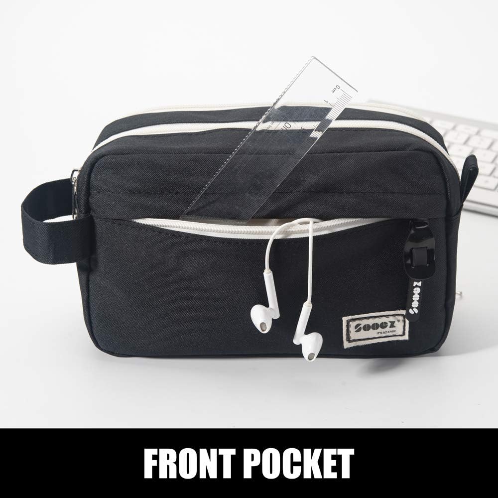 Sooez High Capacity Pencil Case, Big Pencil Bag Pouch Box Organizer Pen Case, Portable Journaling Supplies with Easy Grip Handle & Loop, Asthetic Supply for Girls Adults, Black