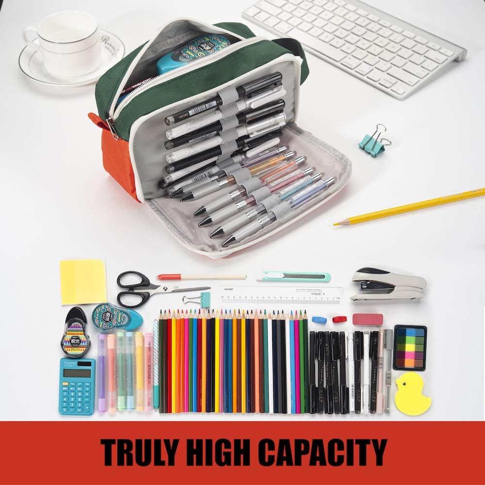 - Super Large Storage: This pencil case is probably the biggest one you've ever come across. Huge storage space that can hold up to 100 pens or pencils. Perfect for students who carry a variety of tools besides pens, such as pens,such as markers, rubber, calculator and more.