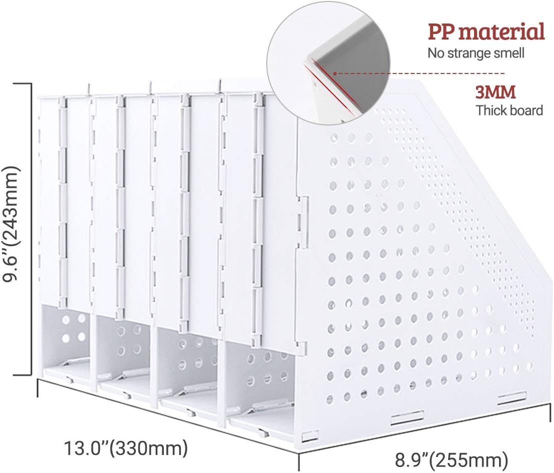 Lemical Magazine Holder 4 Vertical Compartments Collapsible Magazine File Holder Space Saving Rack Home Kitchen Desk Organizer No Need Assemble Gray