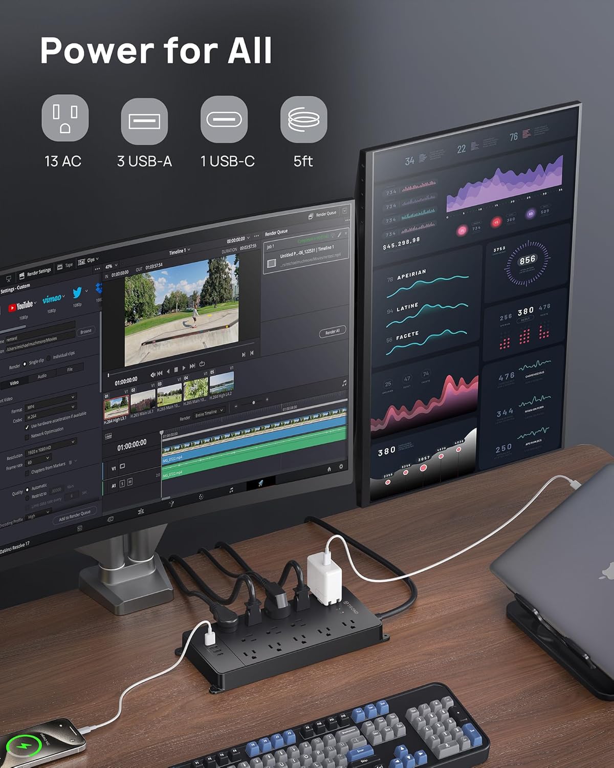 - Special Feature : Wall mountable design (screws included); 13 widely-spaced AC outlets with 4 USB charging ports