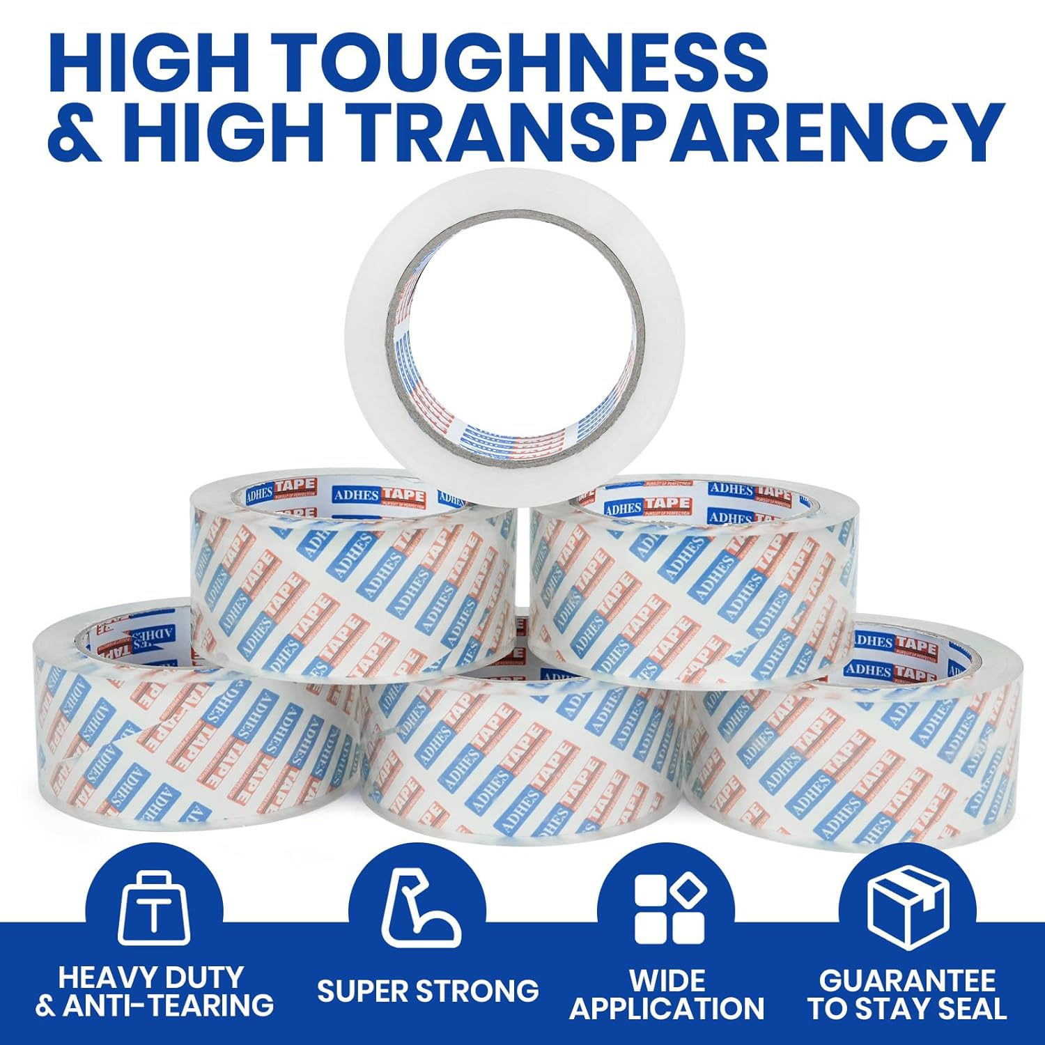 ADHES Packing Tape Shipping Tape Packaging Tape for Moving Boxes Heavy Duty Clear, 55M Per Roll 1.88 Inch Width,2.7Mil