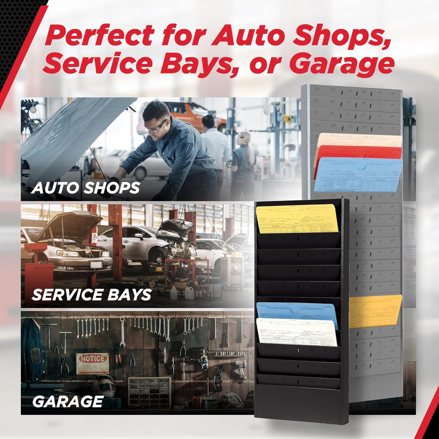 PROLific Automotive Products CHAMP Repair Order Rack, 12-Pocket Wall Mount Organizer, Heavy-Duty Alloy Steel, Powder Coated, Ideal for Auto Workshops and Garages - Black