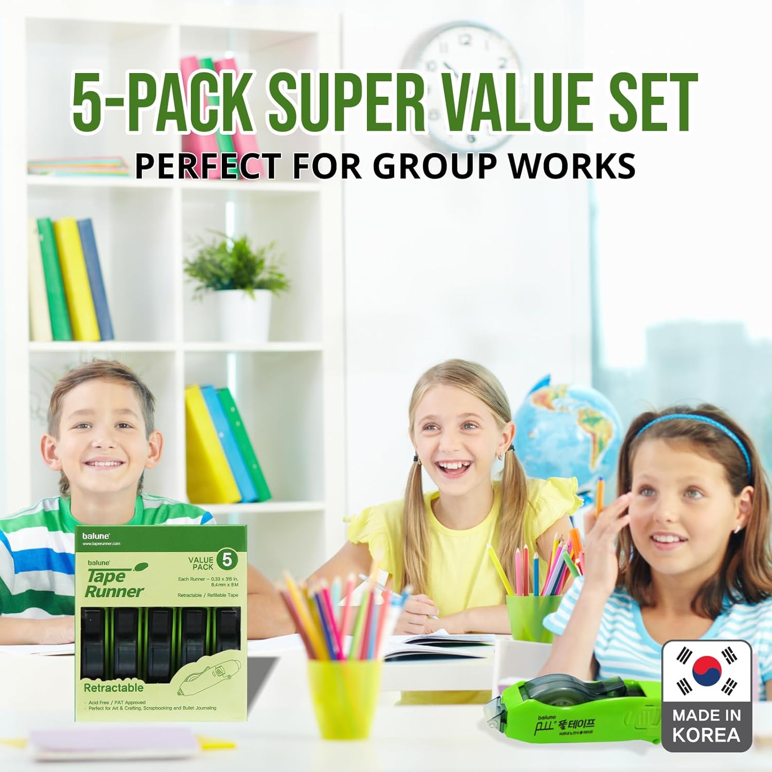 Tape Runner - Double Sided Adhesive with Dispenser Roller Included - Acid Free, Sticky, Transparent - Ideal for Scrapbooking, Crafts & More - Retractable (315 inches per Cartridge), 5 Cartridges