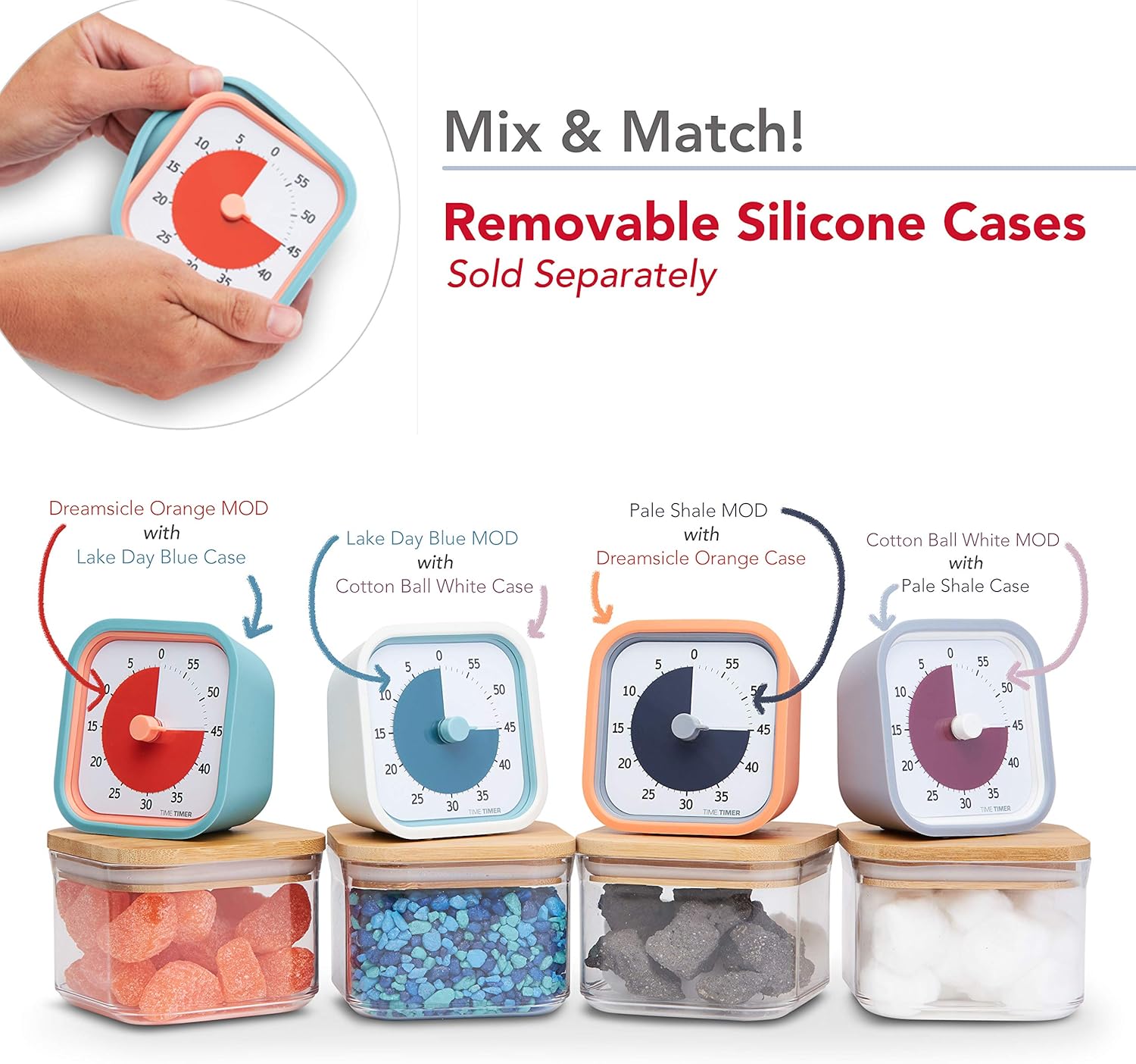 - REMOVABLE SOFT CASE — The silicone case helps protect and soften the visual timer. The new available colors evoke personal expression and help you complete your activities on time. Additional cases are sold separately