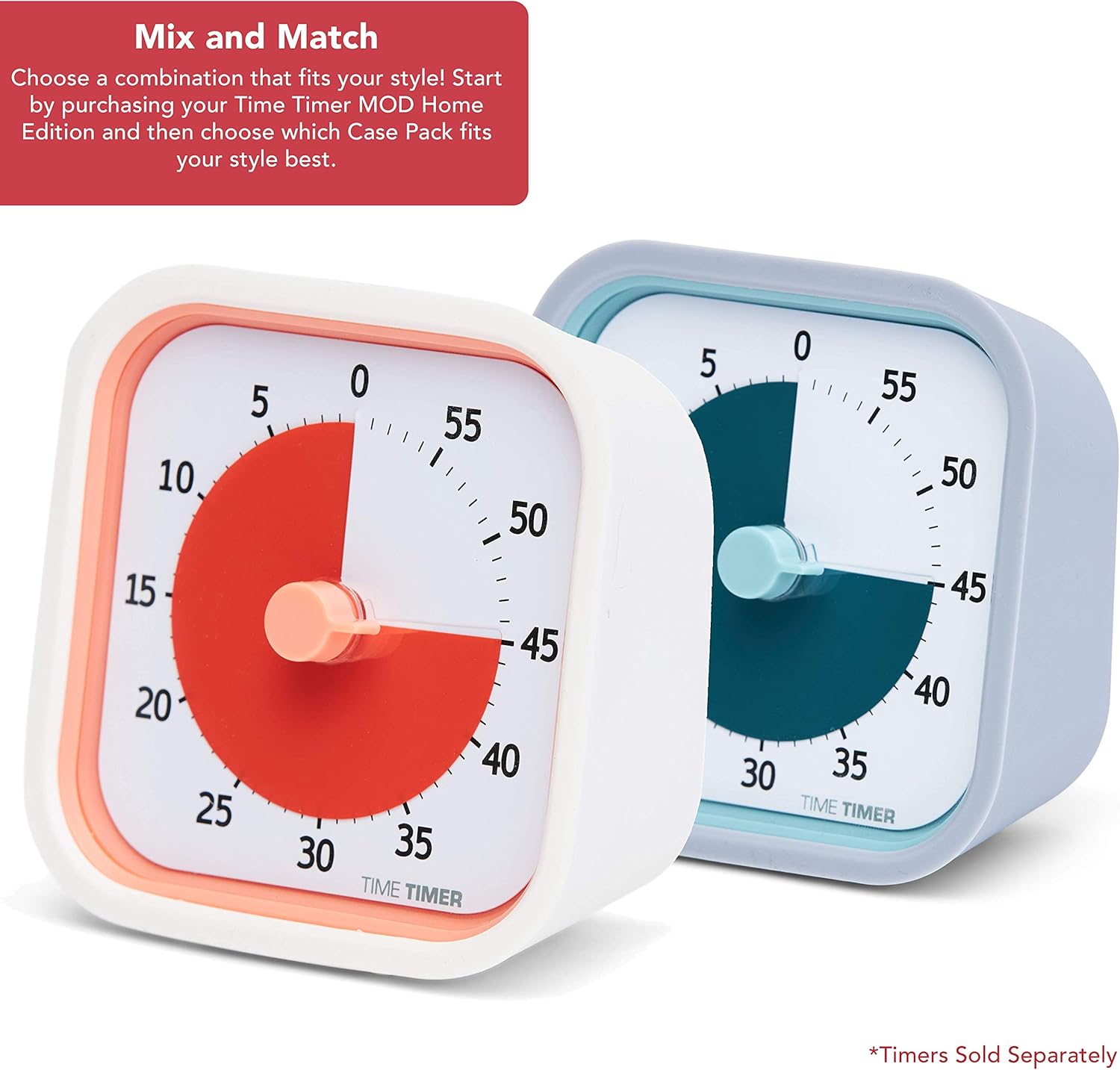 TIME TIMER Home MOD Neutral Cases - for Classroom Learning, Homeschool Study Tool, Student Desk Clock and Office Meetings with Silent Operation (2-Pack)
