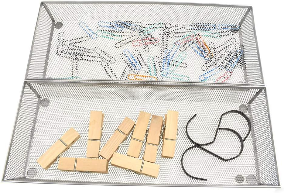 HAHIYO Stackable Mesh Tray Cup 15 x 6 x 2 inches Sturdy Container for Desk Drawer Organizer Collection for Home Office School kitchen Soft Foam Feet No Sharp Edges 1 Pack Silver
