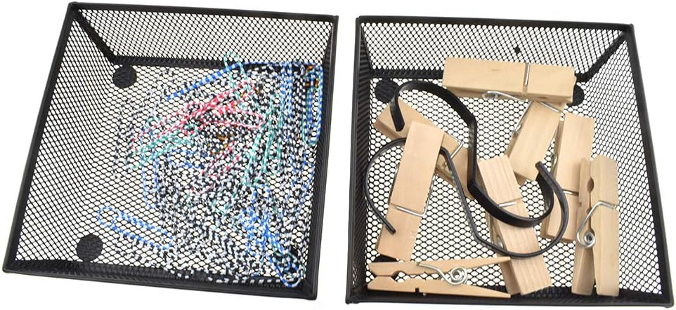 HAHIYO Stackable Mesh Tray Cup 6 x 6 x 2 inches Sturdy Container for Desk Drawer Organizer Collection for Home Office School kitchen Soft Foam Feet No Sharp Edges 2 Pack Black