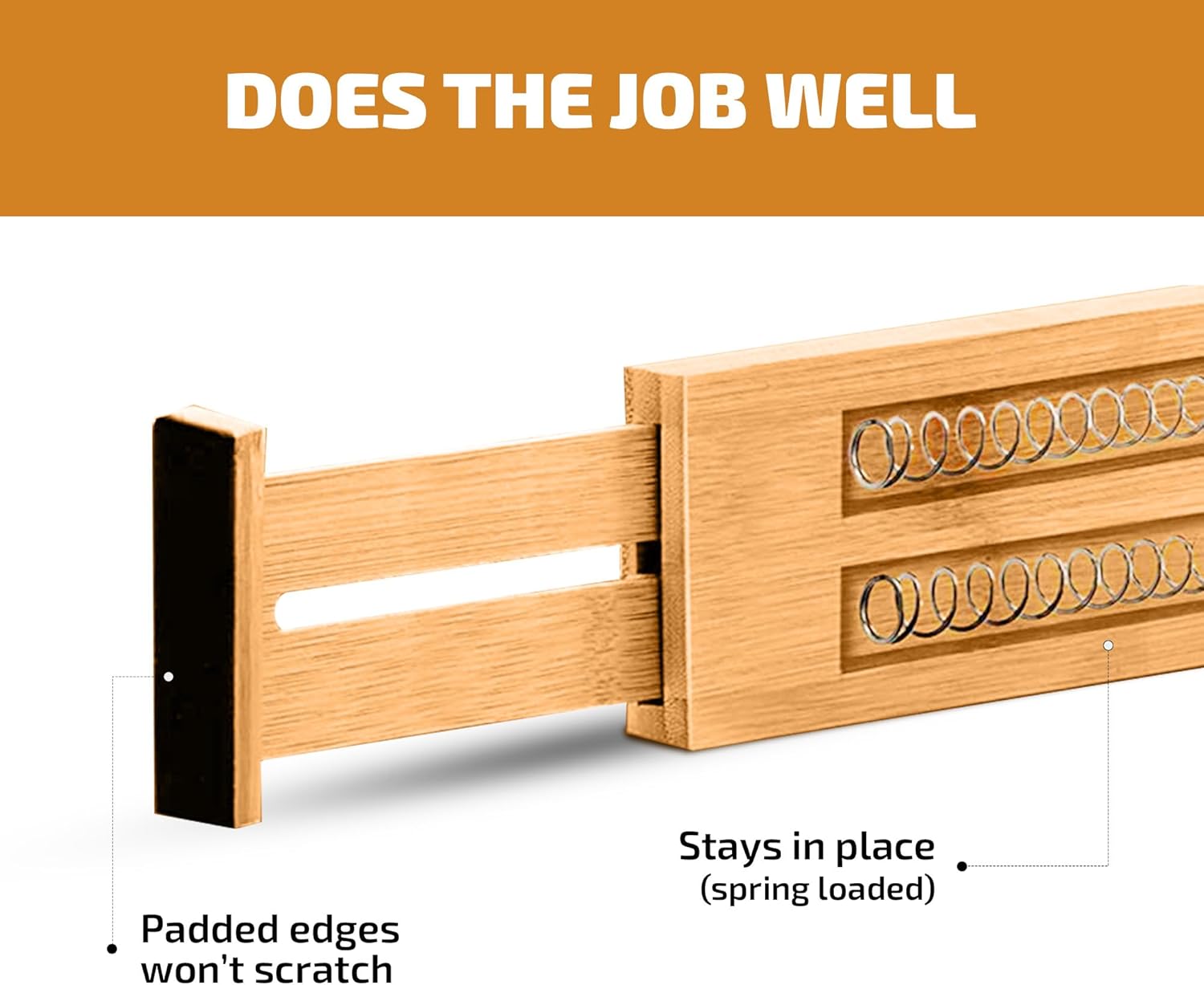 - STRONG SPRING: The drawer separators really bring organization into your home, because they don’t wobble or move out of place. With the spring mechanism and foam padding, the wood dividers stay firmly in place.