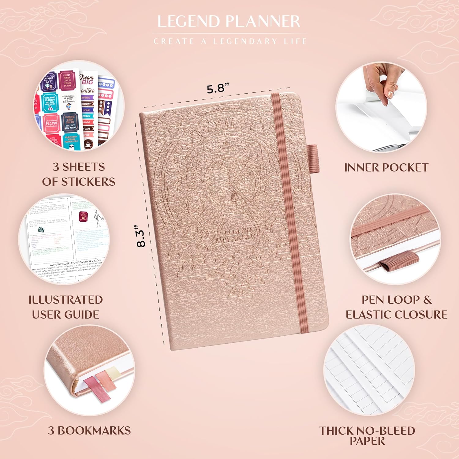 Legend Planner Hourly Schedule Edition – Deluxe Weekly & Daily Organizer with Time Slots. Time Management Appointment Book Journal for Work & Personal Life, Undated, A5 Hardcover – Rose Gold Gold