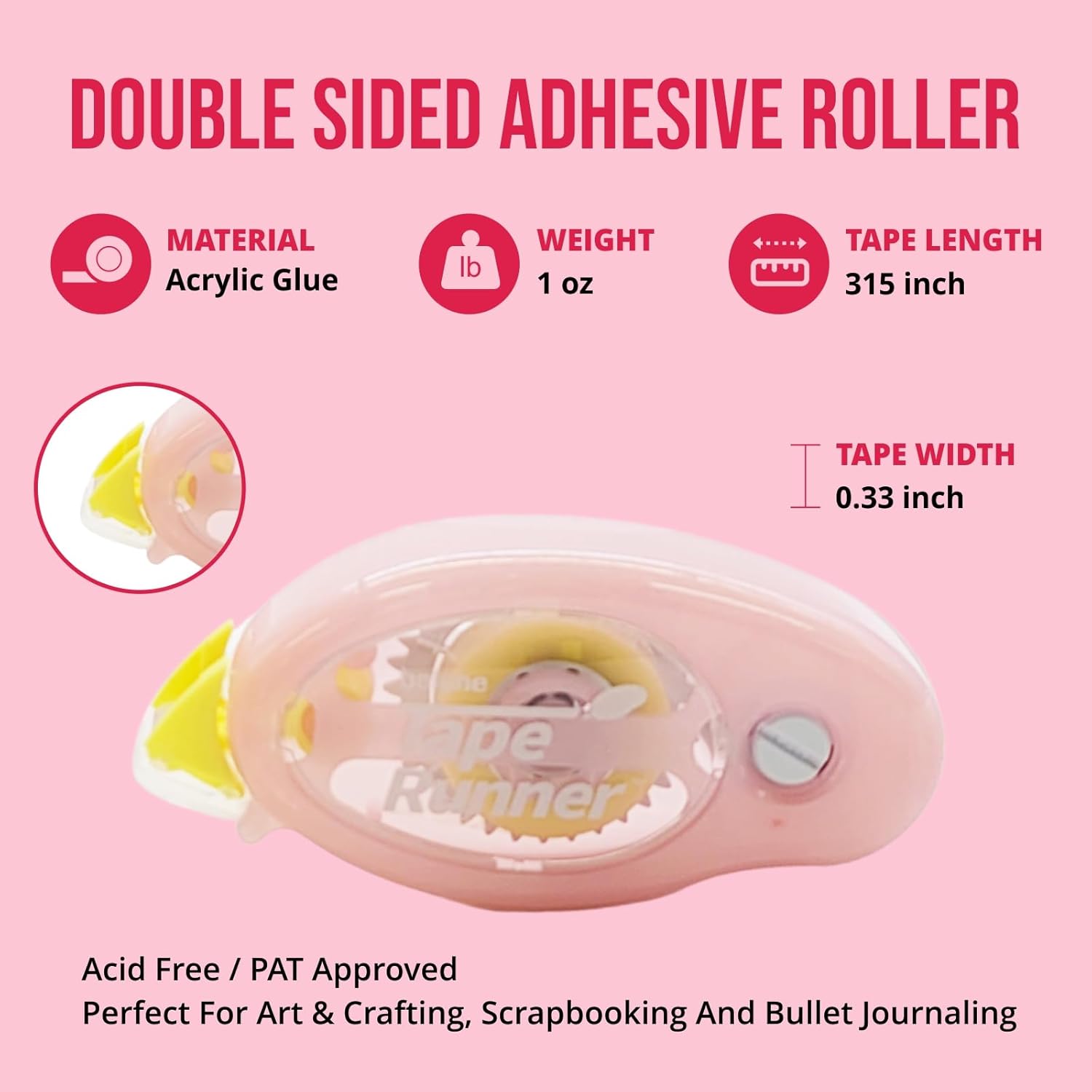 Tape Runner - Double Sided Adhesive with Dispenser Roller Included - Acid Free, Sticky, Clear & Transparent - Ideal for Scrapbooking, Crafts & More - Standard - (315 inches per cartridge) 20 Cartridge