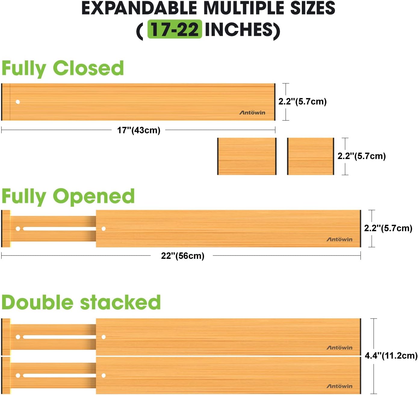 - ORGANIZED DRAWERS: The drawer dividers from ANTOWIN are the best way to avoid a mess in the kitchen, bathroom, bedroom or elsewhere in your home or office. These bamboo drawer separators will help you keep everything organized and tidy at all times!