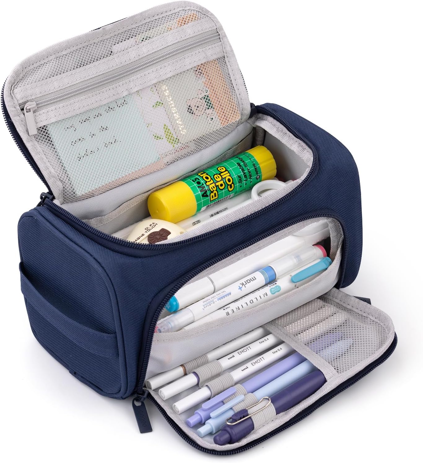 HVOMO Big Capacity Pencil Case High Large Storage Pouch Marker Pen Case Travel Simple Stationery Bag School College Office Organizer for Teens Girls Adults Student(Blue)