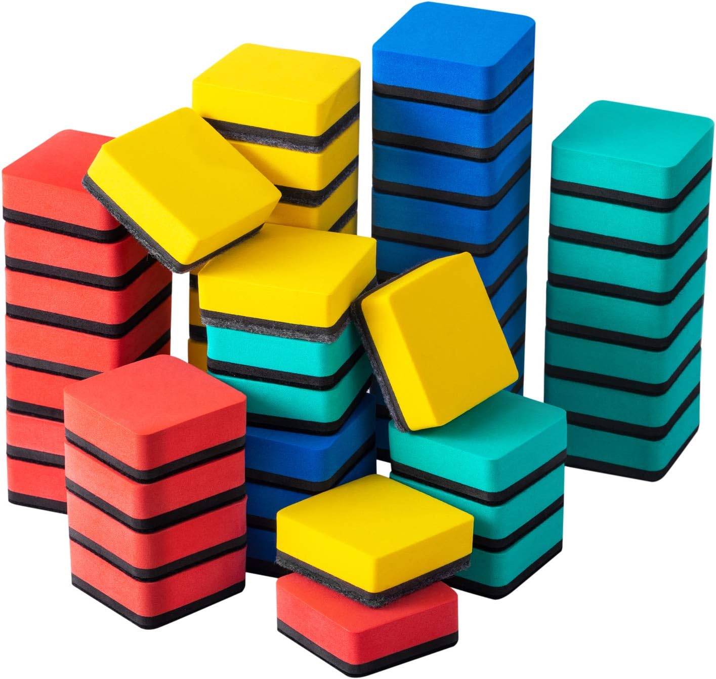 Dry Erase Erasers, Eeoyu 40 Pack Magnetic Whiteboard Dry Erasers Chalkboard Cleaner Wiper for Kids and Classroom Teacher Supplies Home and Office, 4 Colors