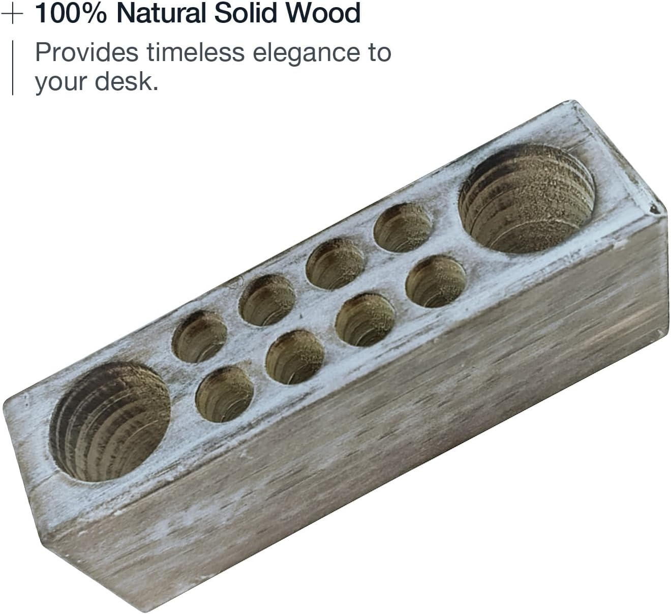 - HANDMADE – A whitewashed wood pencil holder for desk that is one of a kind. It is one solid piece of wood, hand painted, each with its own unique patterns and colors.