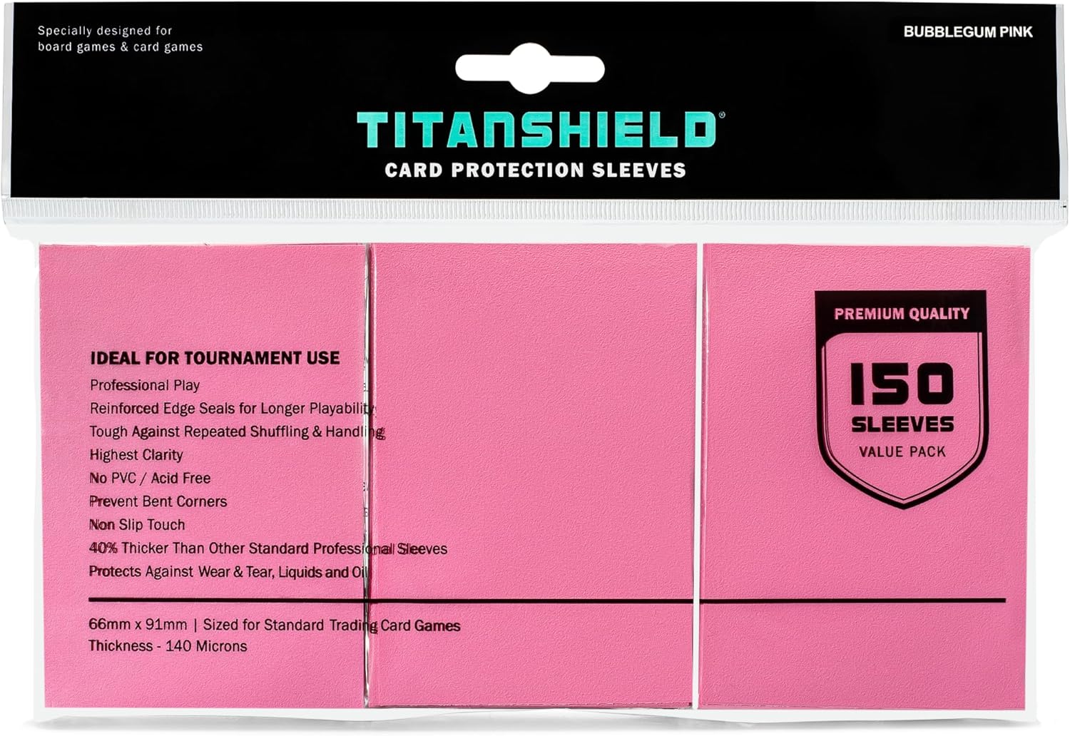 TitanShield (150 Sleeves/Bubblegum Pink) Standard Size Board Game Trading Card Sleeves Deck Protector for MTG, Dropmix
