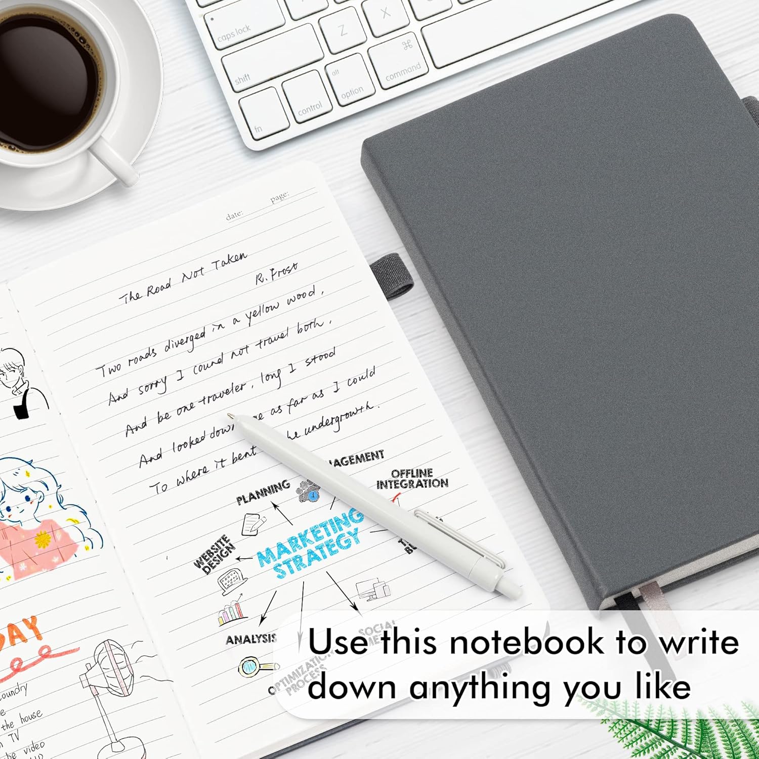 - Feela 12 Pack Classic Ruled Notebooks contains 12 classic gray ruled sturdy cover notebooks and 12 Black Retractable Pens. Each of the notebooks measures 8.3” x 5.1”, which is perfect to carry and easily held by young girls and boys. These black cute pens are customized to be placed in the pen holder, which is pretty convenient.