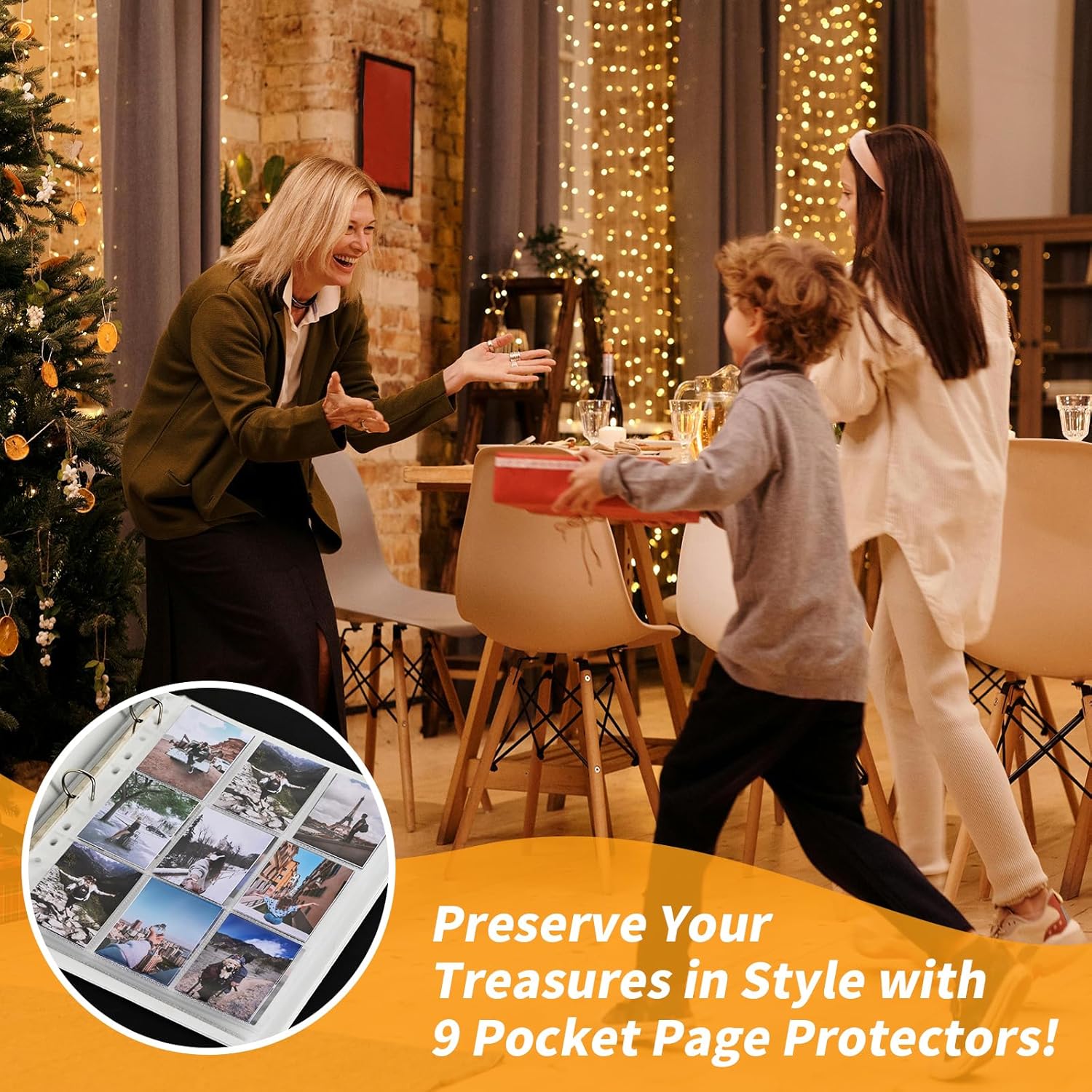 - 【DOUBLE-SIDED DISPLAY】: 9 pockets per page trading card sleeve for double-sided display, 9 pocket trading card pages can hold 18 cards, 100 page, Holds 1800 Cards. Dimensions: 3.54*2.75 inches, each pocket can hold up to 2 1/2 x 3 1/2 cards.You use a picture showing cards being inserted into both sides.