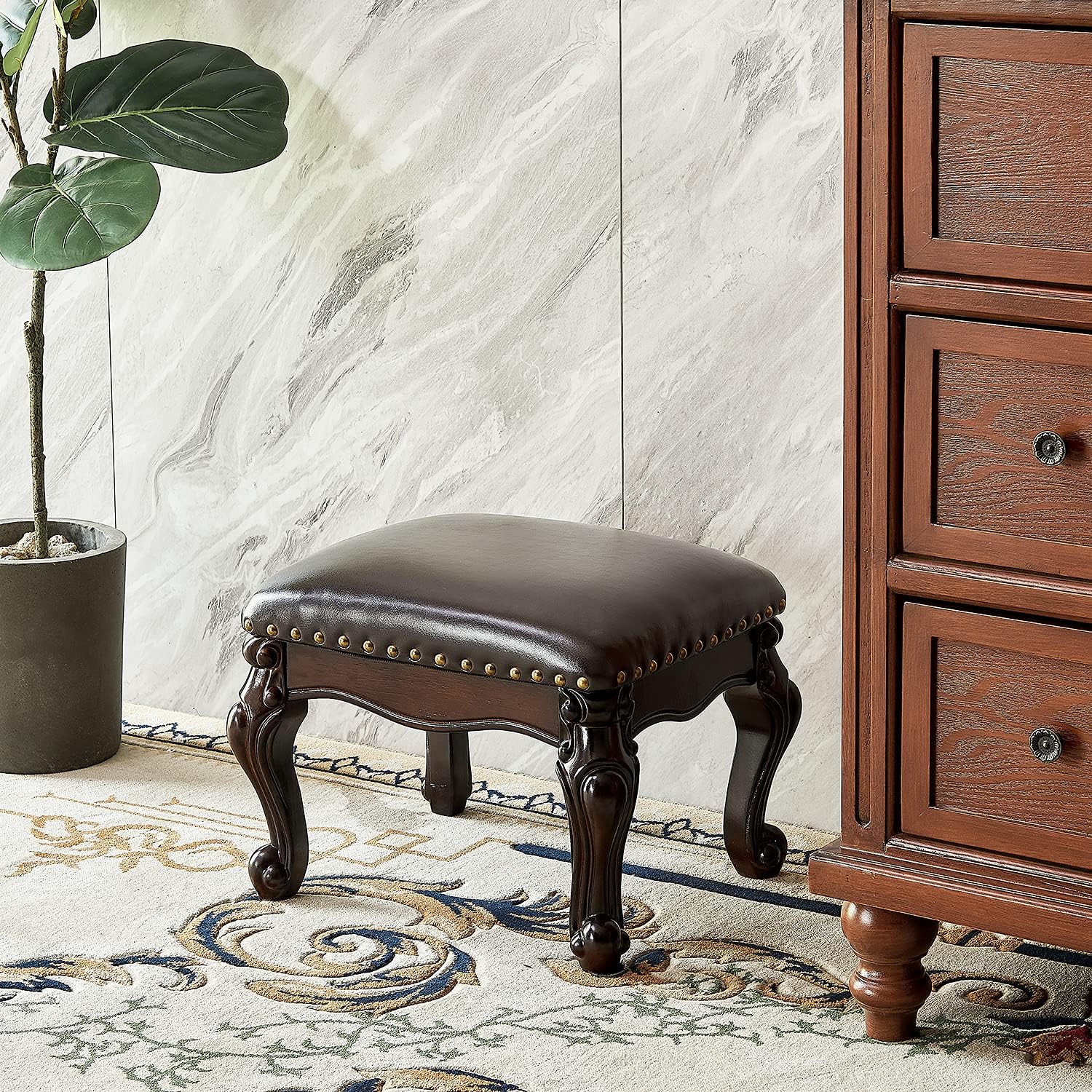 Foot Stool Ottoman Foot Rest Microfiber Leather Upholstered Footstool for Sofa, Living Room, Entryway, Solid Wood Stool (Black Brown)